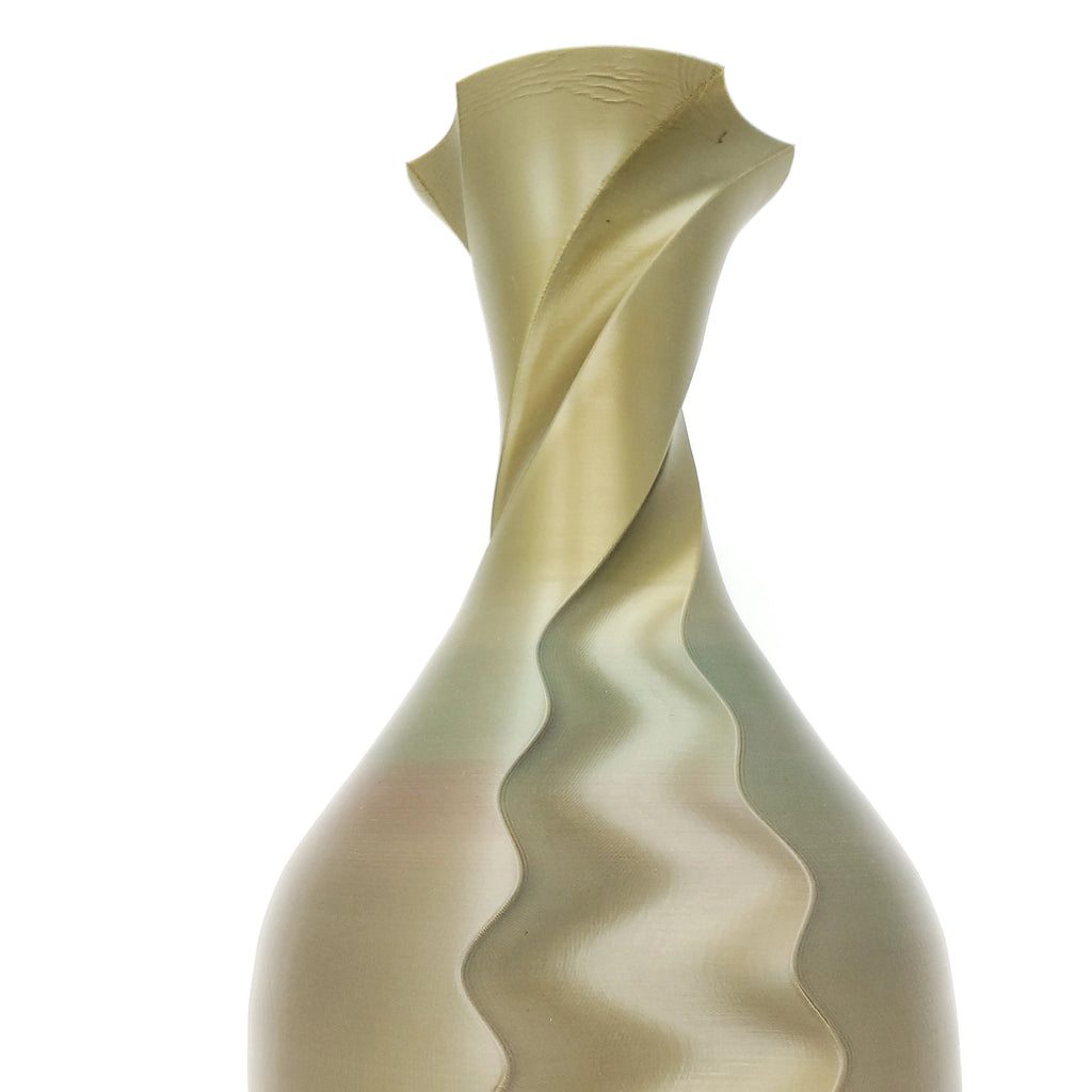 A gorgeous metallic 3D printed geometric vase, adding a modern touch of elegance and sure to become a conversation piece in your home! These vases are 3D printed with a high-quality multi-color gradient filament, and each is unique in the spread of colors. Eco-friendly and durable!