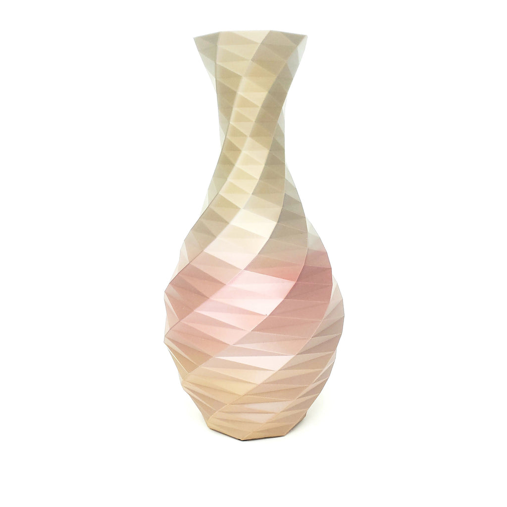 A gorgeous metallic 3D printed geometric vase, adding a modern touch of elegance and sure to become a conversation piece in your home! These vases are 3D printed with a high-quality multi-color gradient filament, and each is unique in the spread of colors. Eco-friendly and durable!