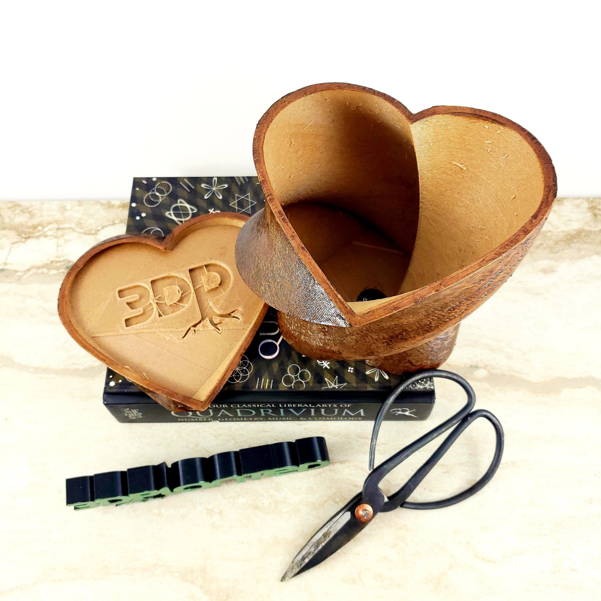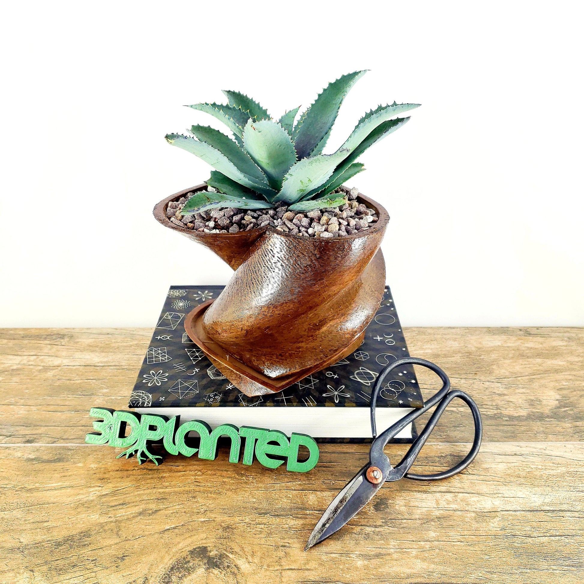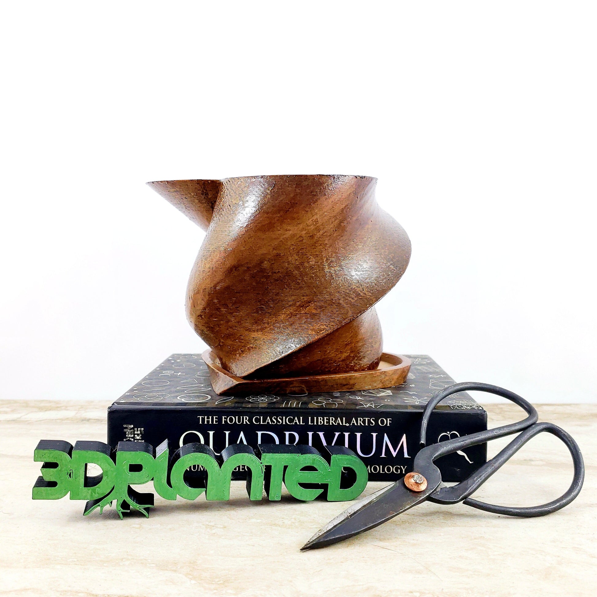 Modern 3D Printed Wood Heart Twist Plant Pot with Saucer - Ideal for Cacti, Succulents, or Flowers - Gift Idea