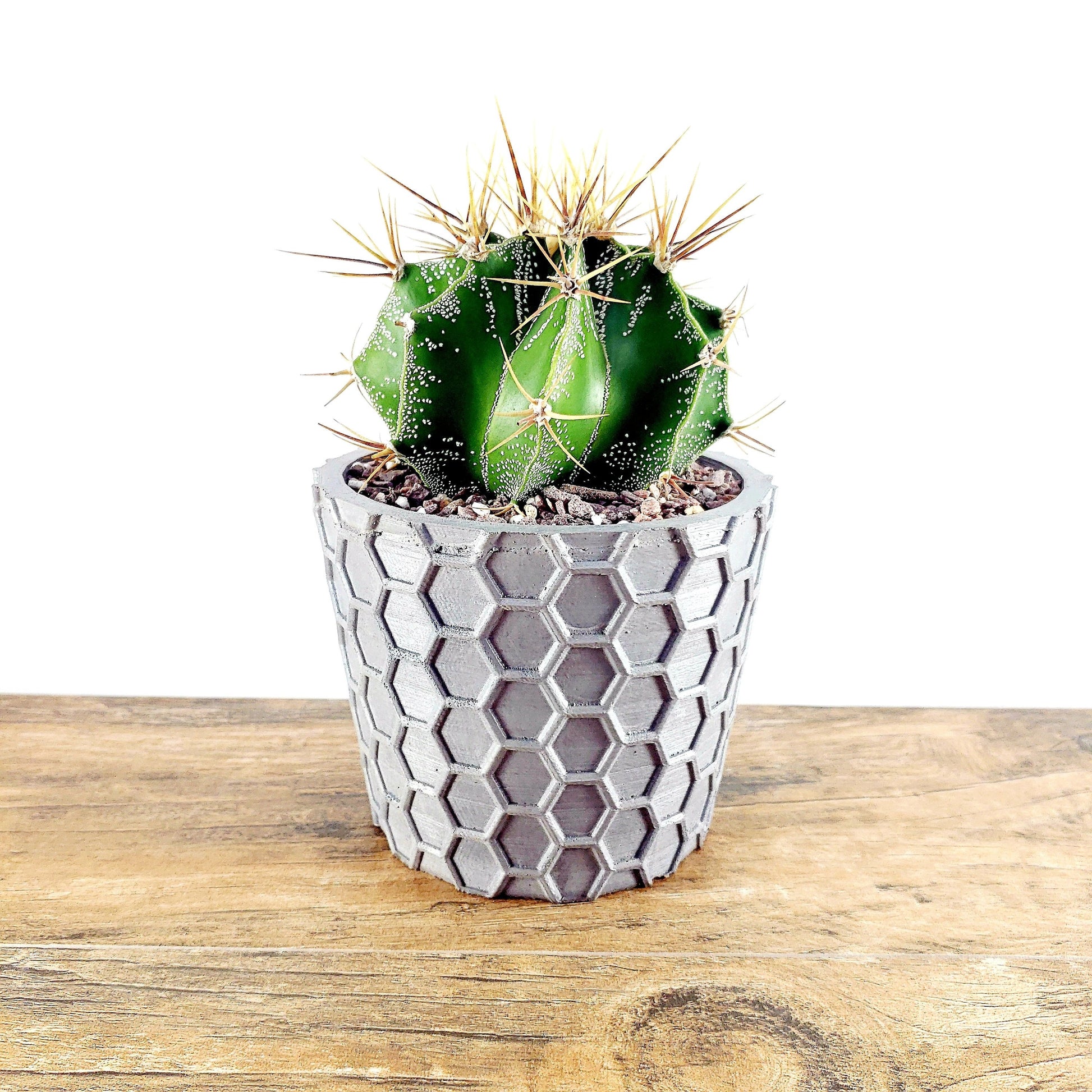 Concrete Planter Honeycomb Geometric - Indoor/Outdoor Plant Pot