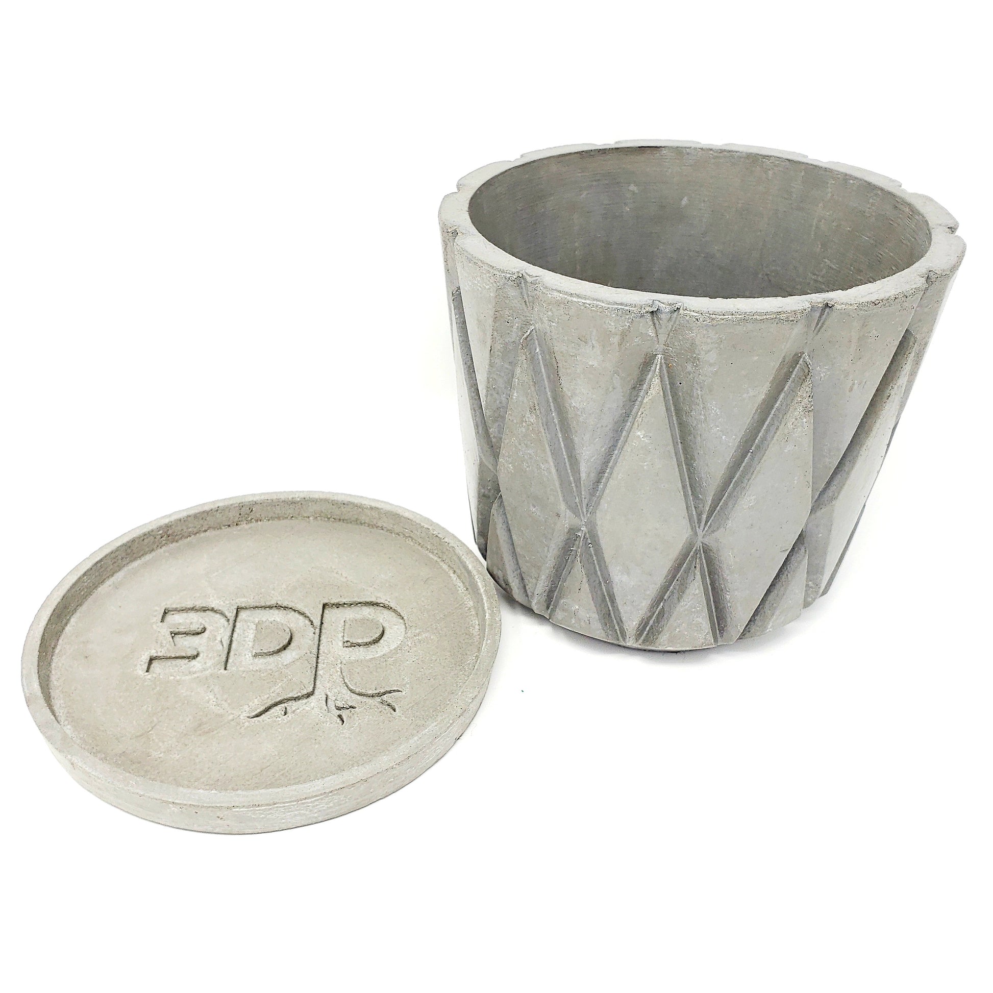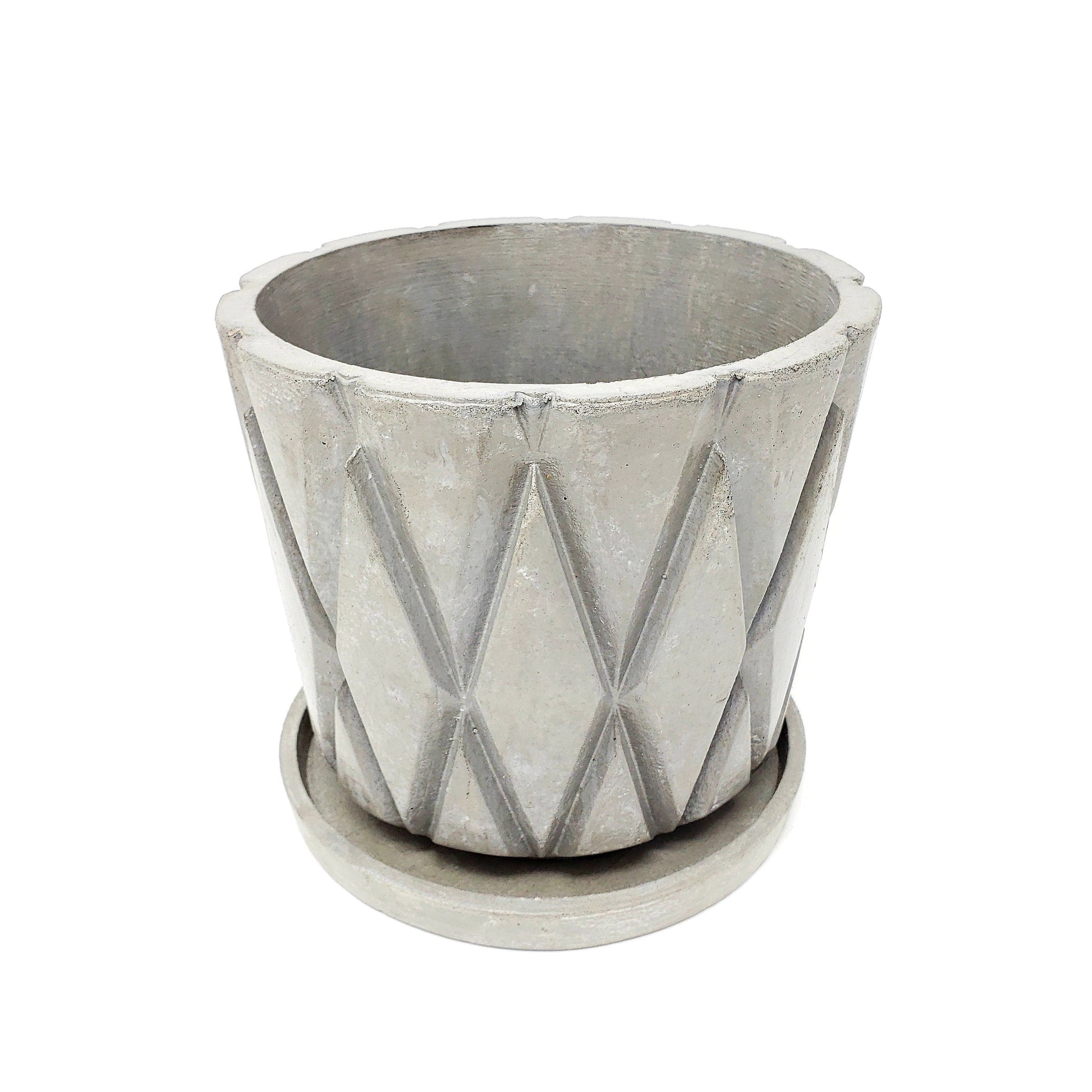 This edgy lattice-inspired concrete planter makes a bold statement. Hand-poured from a high-strength concrete blend and sealed for durability, its modern geometric design complements succulents, houseplants, or small trees indoors or out.