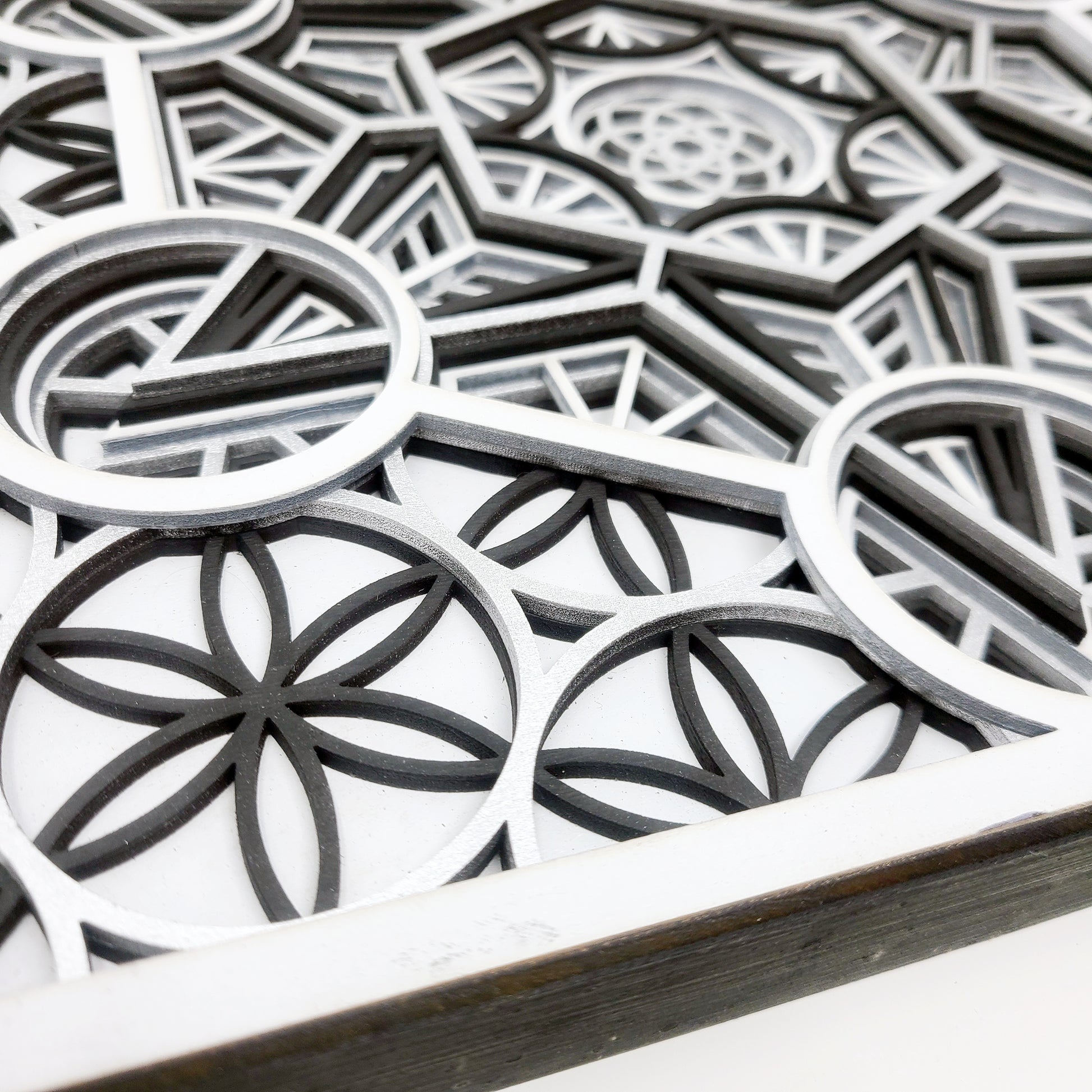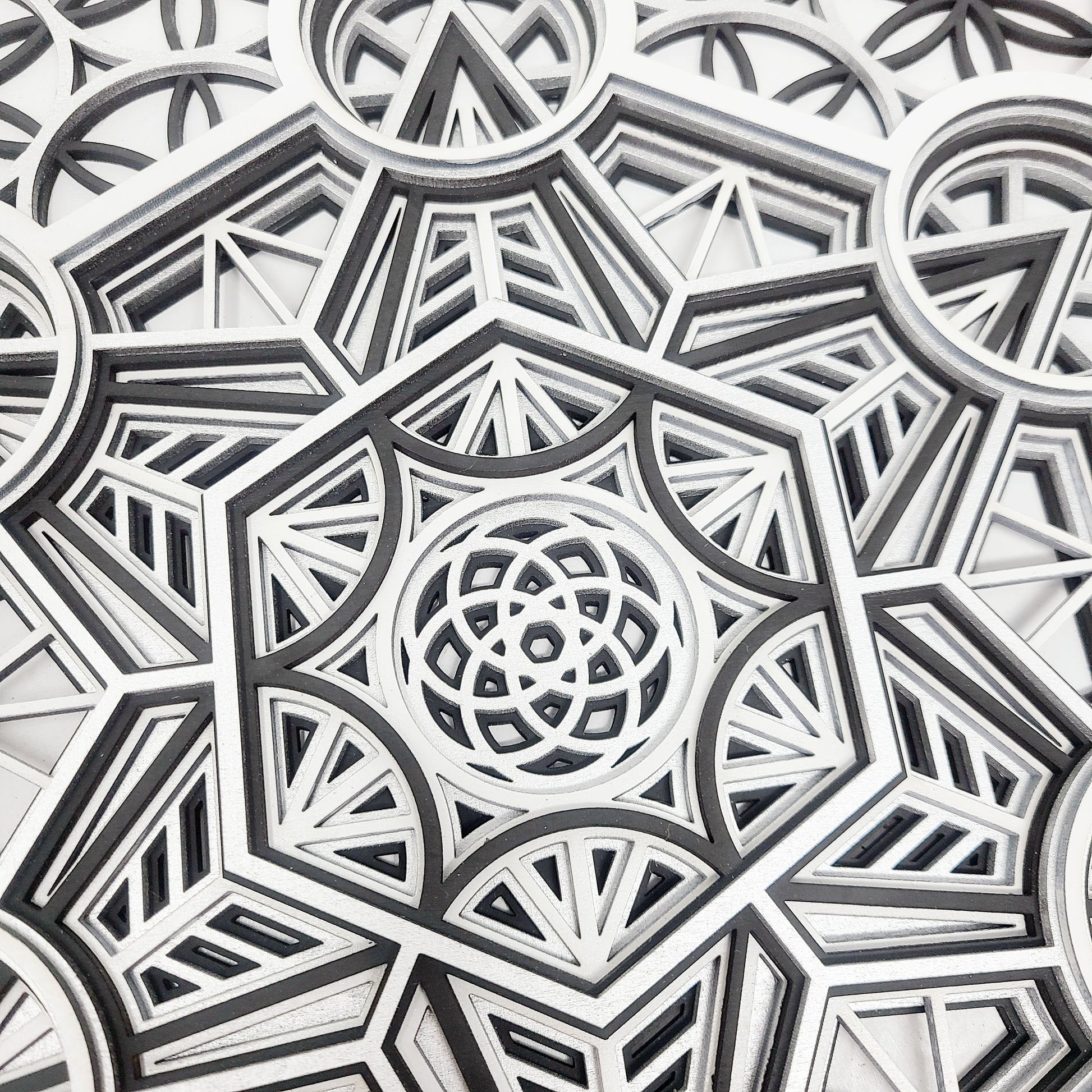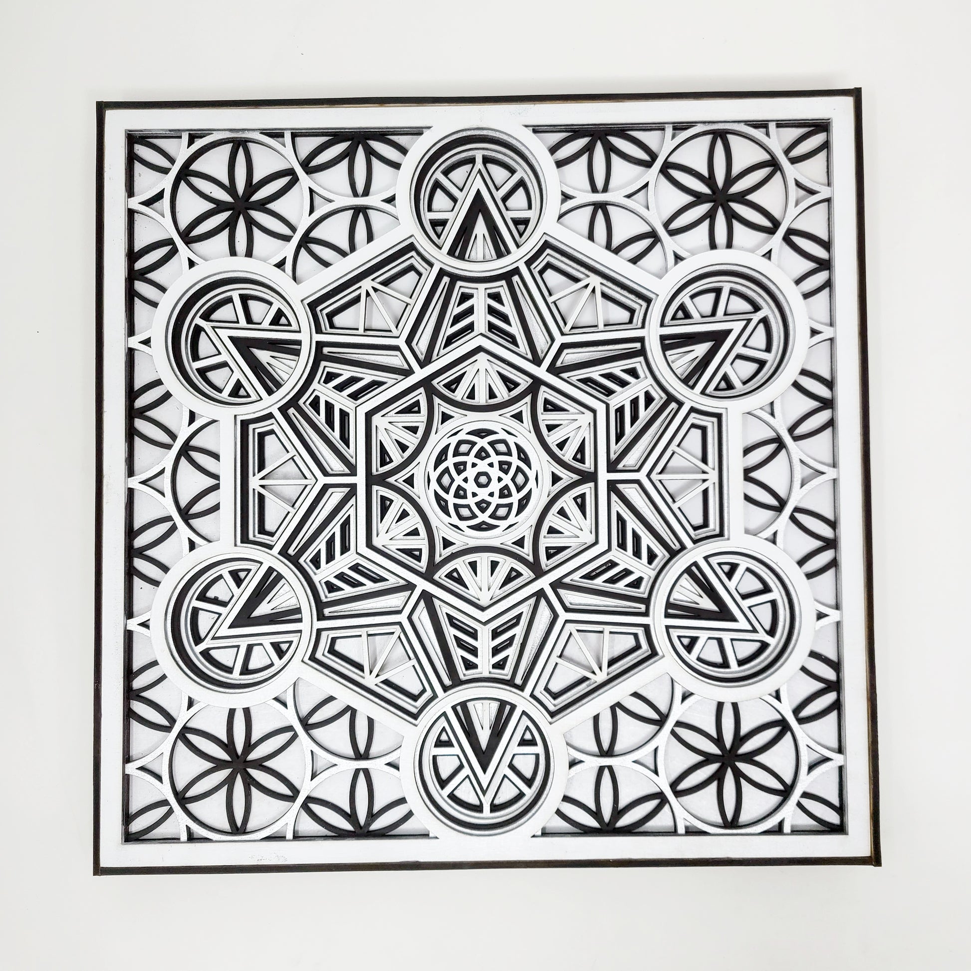 Metatron's Cube - Layered Laser Cut Wall Art - 3D Mandala Shadow Box - Black/White