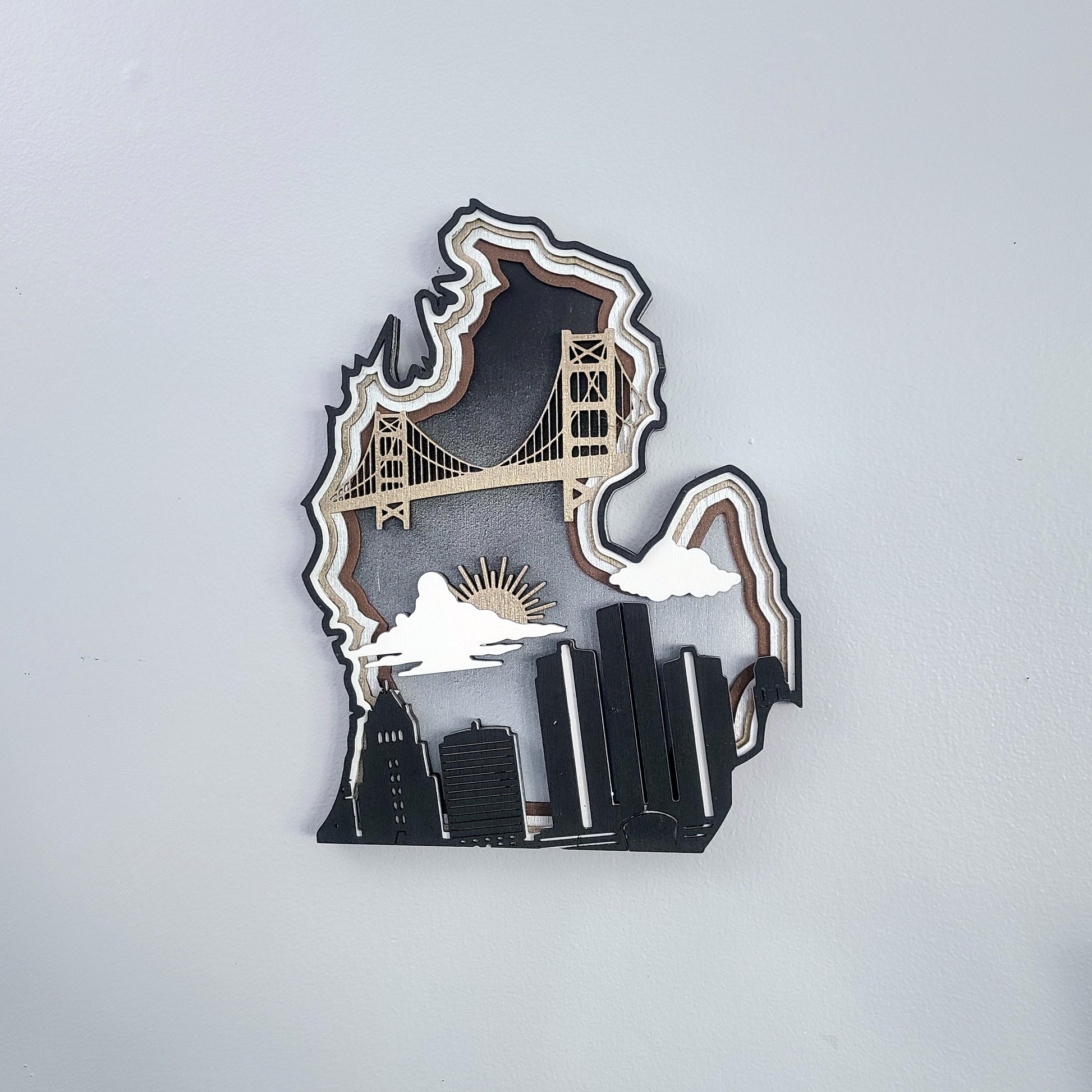 Show your Michigan pride with this beautifully crafted layered laser-cut wall art! This 3D wood state map features the Great Lakes and the unique geography of Michigan, making it the perfect gift for travelers, state lovers, and nature enthusiasts.